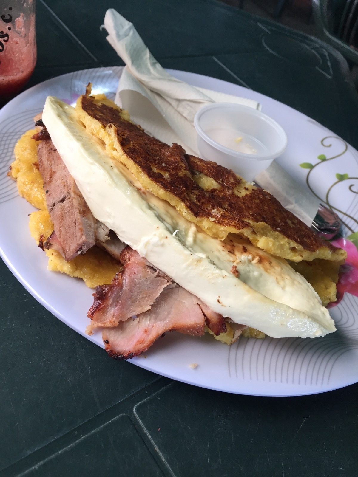 La infancia de mi esposo estuvo marcada por los constantes viajes con su abuela desde Caracas hasta Maracay a visitar a su mamá. Cuenta que la comida en la carretera era una cachapa y un jugo de naranja marca Frica y que puede recordar ese sabor y todas las sensaciones que acompañaban el viaje solo con cerrar los ojos. En uno de nuestros viajes a Caracas, pude vivir la experiencia de comer en el bus una cachapa y un jugo de naranja, preparados y servidos con amor por una nueva generación de vendedores de cachapa. Yo quedé gratamente sorprendida y mi esposo viajó en el tiempo, hacia su feliz infancia.