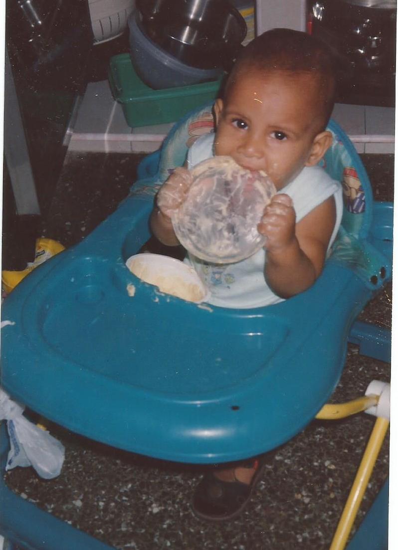 Mi hermano menor era muy hambriento de pequeño, abría la nevera y mordía las arepas frías y los tomates... jajajaja y sólo tenía dos dientes arriba y dos abajo!