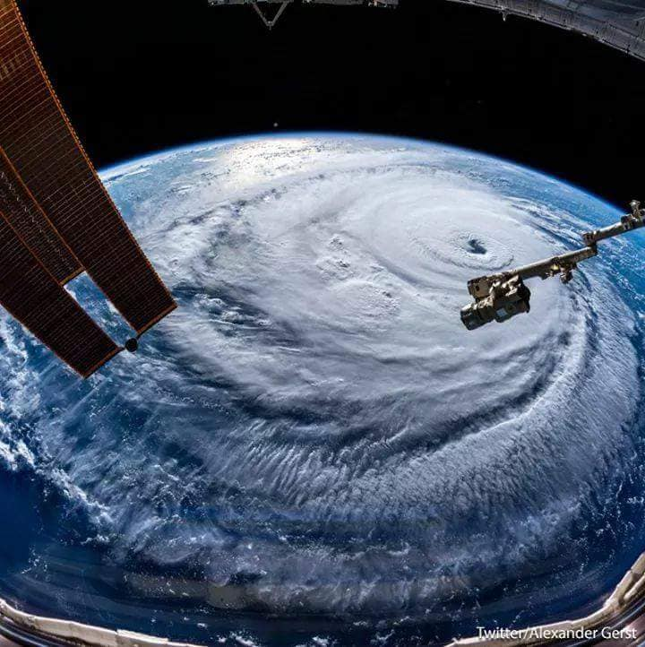 El huracán Florence es tan grande que desde el espacio se tuvo que usar una lente gran angular para fotografiarlo. El astronauta que tomó la foto le dijo al pueblo estadounidense: "Prepárense, esto es serio, es una pesadilla para ustedes".
