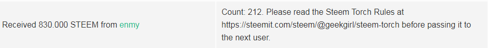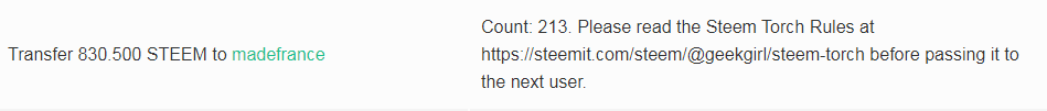 6.- Envíe el Steem Torch con la nueva cantidad y el memo al próximo Torch Keeper lo antes posible.