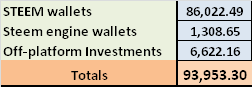 - STEEM Wallets is the total of all STEEM, SP, SBD and Saving's held by the 6 SPinvest sub-accounts we have. There represents 91.55% of SPinvests holdings.