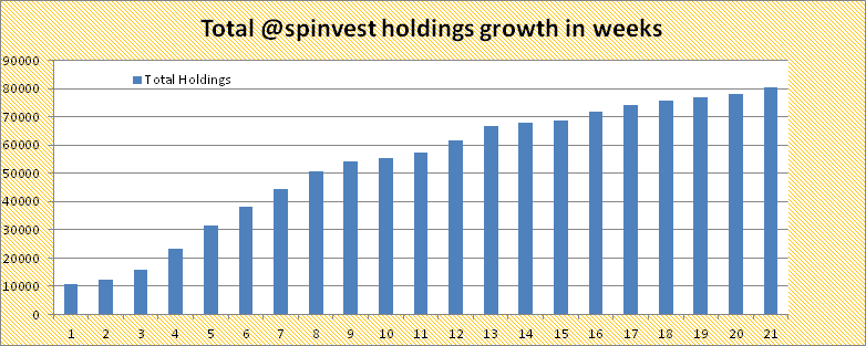 Please also see that i have included total SPI tokens issued along with the true value, these are highlighted below. We have passed the 80,000 STEEM in total holdings and on our way to 100,000. Not bad considering SPinvest is only coming up on it's 6th full month from launch.