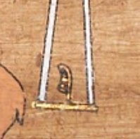 On the other side of the scale is a feather. This is the symbol of Ma'at. The heart is being weighed, judged, by her truth.