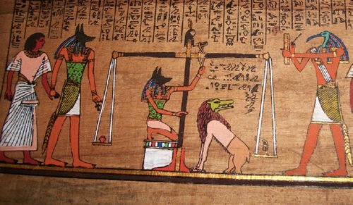 Ma'at is the Egyptian goddess of truth, balance, and justice. In this image we see Anubis weighing the heart of a person to see whether they would be allowed to enter the realm of the dead.