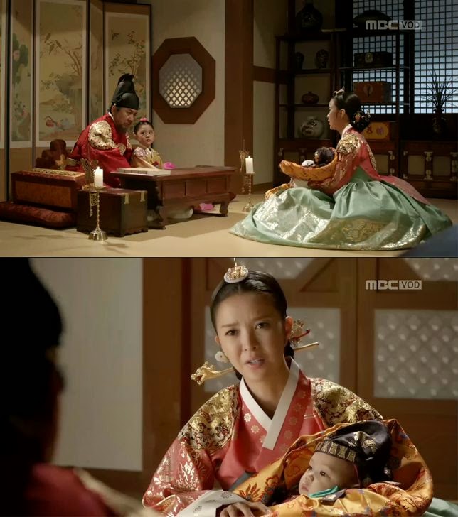 Seonjo wants to turn over the throne to little Yeongchang arguing it is the only way for him to protect his legitimate children. But Queen Inmok (Shin Eun Jung) is worried that it would be a burden to the baby boy.