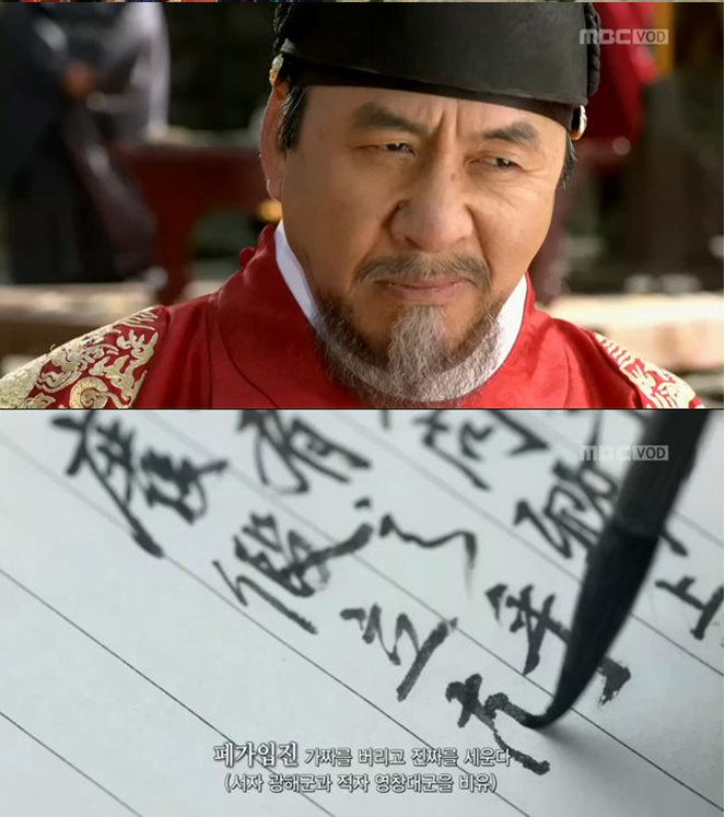 Chung In Hong (Nam Myung Ryul) implores the king to reconsider his decision but Seonjo keeps insisting that Gwanghae is disqualified for the future king.