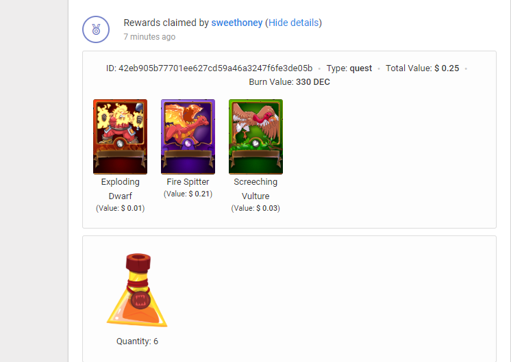 First time getting Gold potion Charges from Daily Rewardbluewinter (57)in #splinterland • 6 years ago Fire Spitter worth 0.21US$ Total value equal US$0.25 while burn value=330 Dec #steemmonsters #spt
