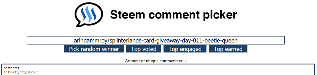 The winner will chosen by random comment picker http://pick.esteem.ws/