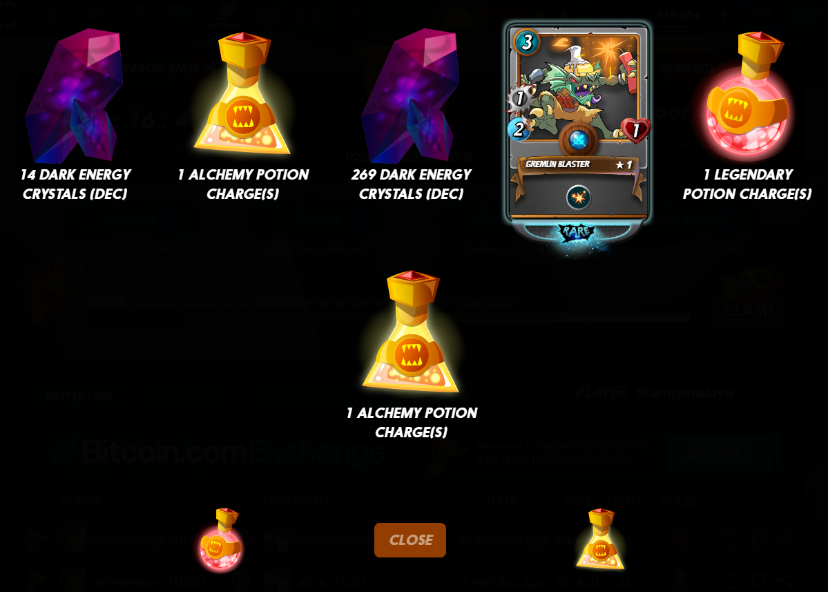I got 1 rare card, DEC and potions.