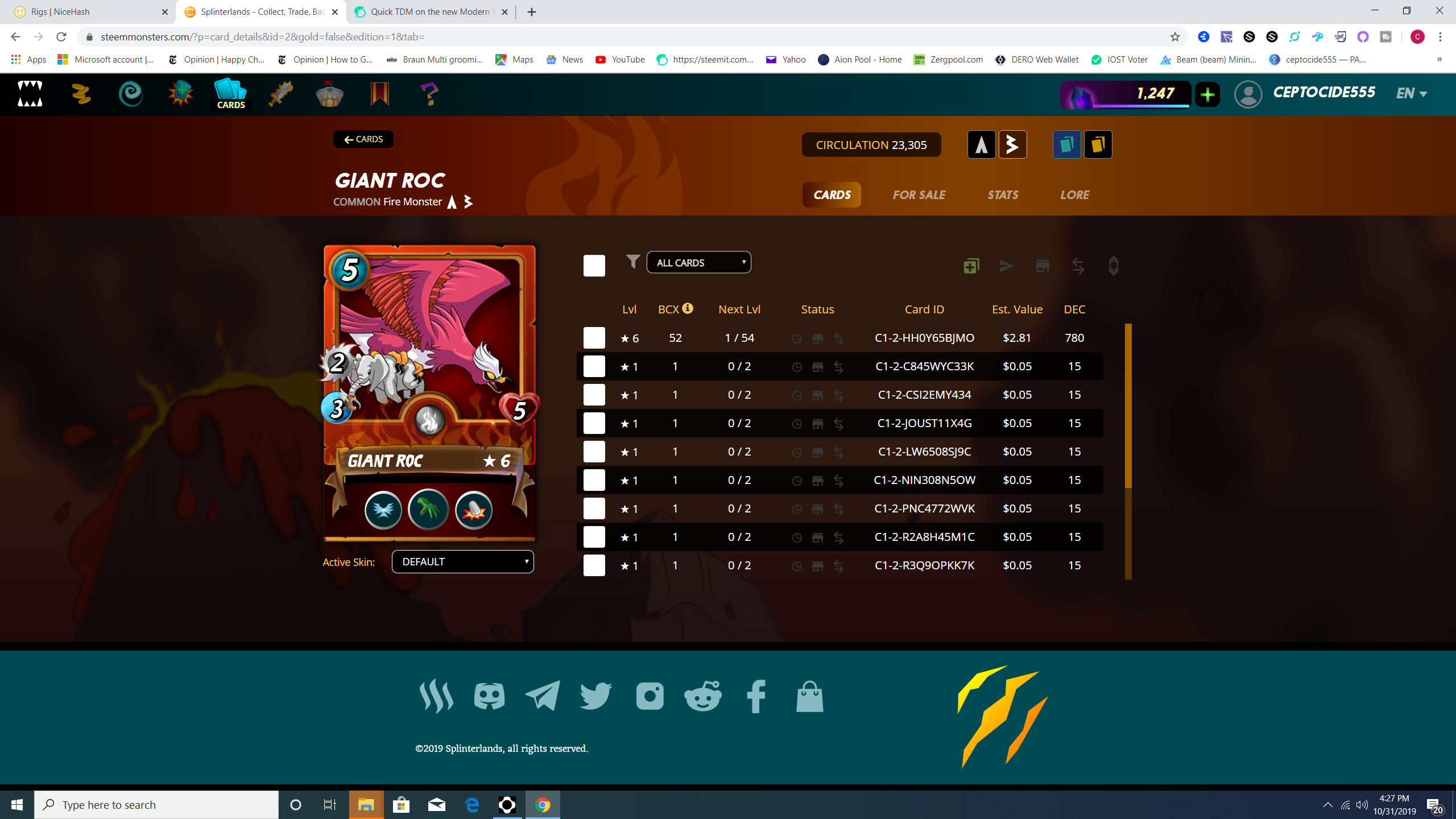 Giant Roc Give Awayceptocide555 (55)in #splinterlands • 6 years ago Today Im going to be giving away a level one Giant Roc. All you have to do in the comments is leave your favorite fire splinter set up and i will pick my favorite one. The contest will end on November 2nd. #palnet #steemace #battle #spt