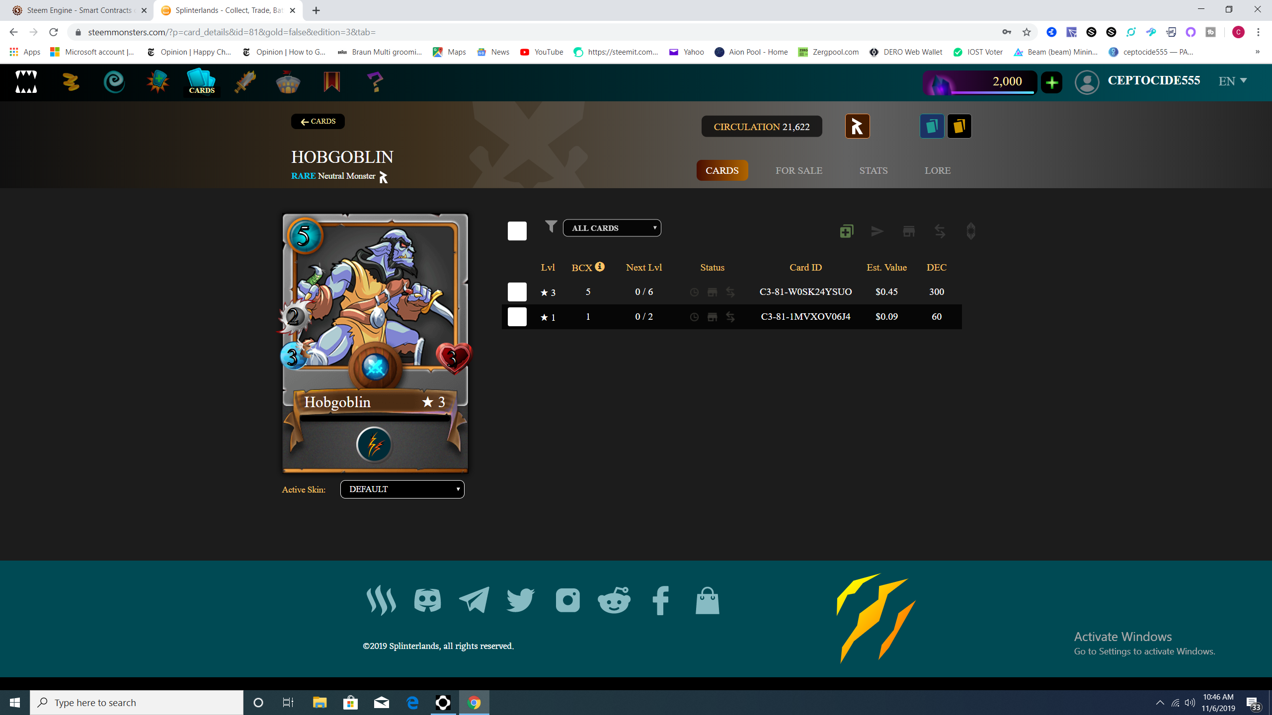 HOBGOBLIN Give Awayceptocide555 (55)in #splinterlands • 6 years ago Today im going to give away a level 1 HOBGOBLIN. Leave a comment below on your favorite neutral monster and why they are your favorite and i will pick a winner with my favorite comment. Winner will be picked on 11-8-2019. #palnet #steemace #battle #spt