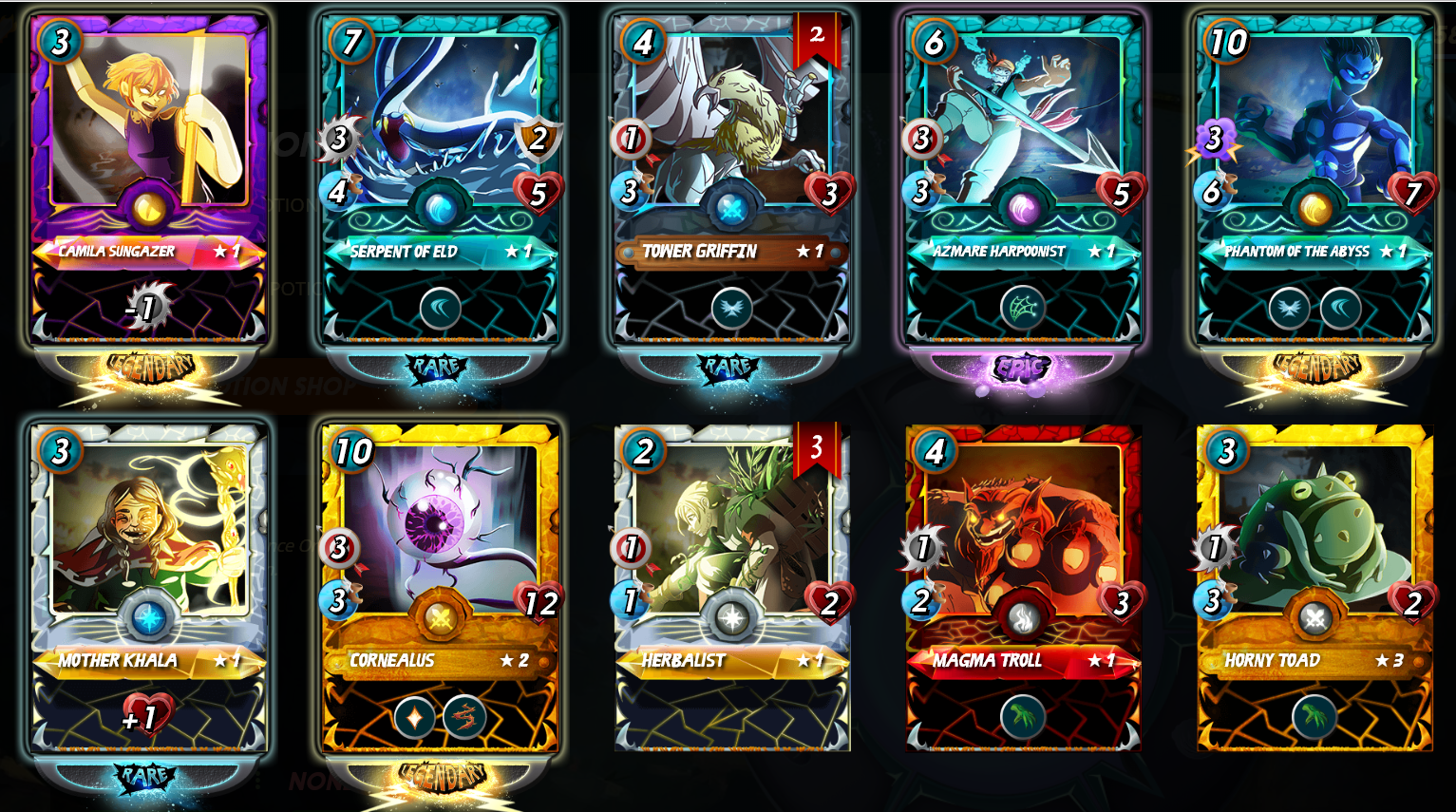 And look at that a camila sungazer, a phantom of the abyss, and last but not least a GOLD Cornealus. By far the best 10 packs Ive ever opened. Love this game.