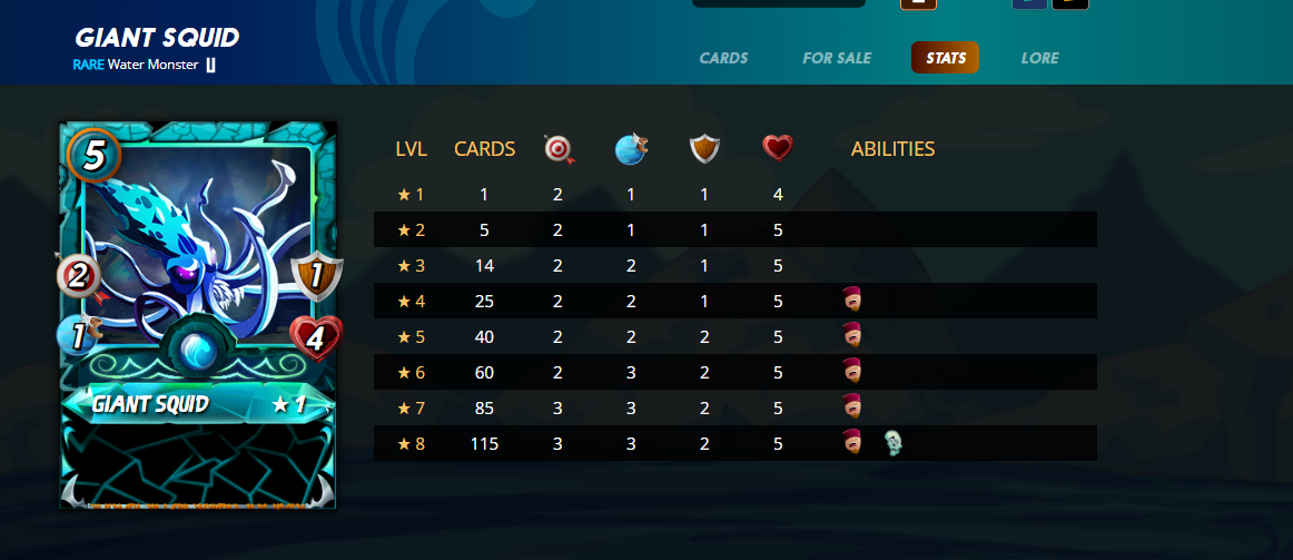 On my delegated account which I usually play on, I have a level 4 giant squid which isn't too bad, it is just that I don't use it much. On my account, I have a gold foil Giant Squid which isn't much of a difference from the normal squid but each level difference does give it a small buff. At level 4, the squid gains the blind ability which can be very useful in giving a higher chance of dodging to your monsters. At max level, it gains weaken, making it kind of the goblin shaman or undead priest of the seas.