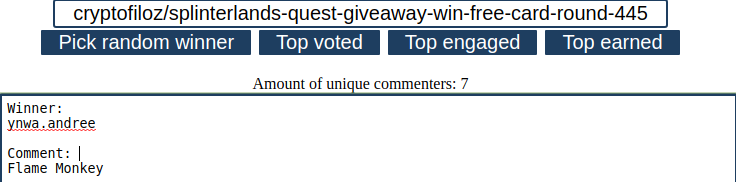 Results of Splinterlands quest giveaway No: 445