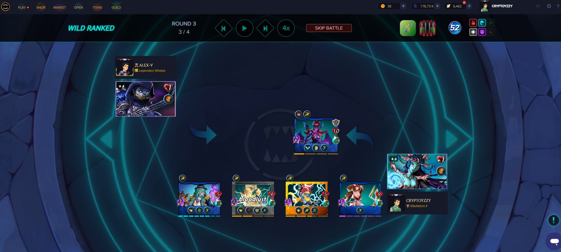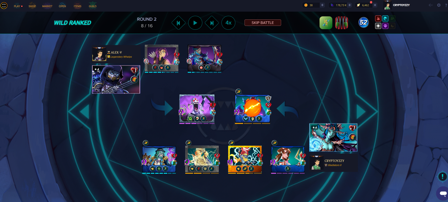 L'adversaire a une bonne stratégie notamment avec son araignée soigneuse, mais il opte pour deux attaques à distance, puissante mais qui vont s'affaiblir et ne pourront plus tirer une fois en première position.