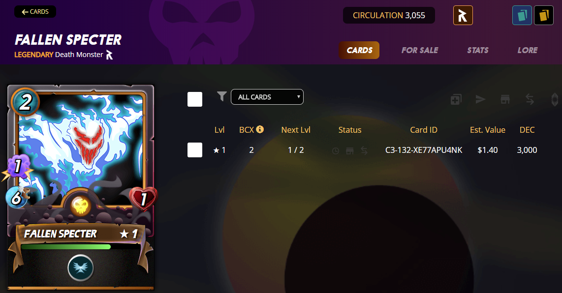 Fallen Specter remains at level 1