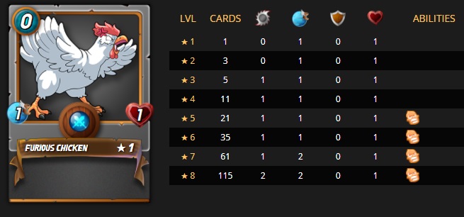 Furious Chicken: Obviously not a 1 mana card, but Furious Chicken remains the only 0 mana card in Splinterlands. As a Neutral, this card should be in every deck. Debatable whether it should be upgraded, but expect to see it remain as the most utilized card until another 0 mana is released. Doesn't even matter that the ability is almost never utilized.