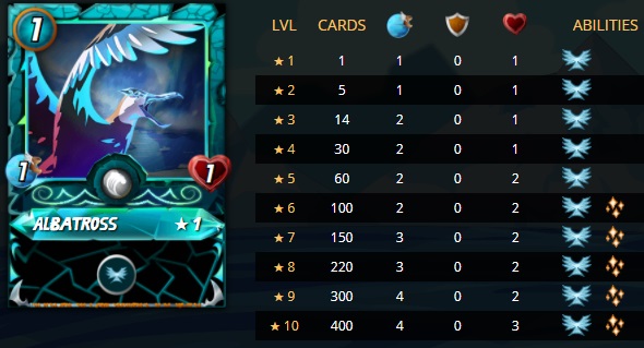 Albatross: The Untamed Edition provided Water Splinter with a very powerful 1 mana card in Albatross. Though lacking any ability to attack, the Flying and more important Tank Heal are significant dual abilities. The lack of an attack is most likely an advantage for most players who want their tank healers to avoid reflect, return fire, and thorns. With the maxed version having health of 3 and speed of 4, this card will see lots of use in Water decks as more players upgrade their Untamed cards. Currently hovering around 2% use for top 25 players, it is the third most utilized Untamed series card. Expect this card to become a standard inclusion in most decks with a high combine rate to achieve the Tank Heal.