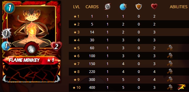 Flame Monkey: The Fire splinter also receives its first 1 mana card in Flame Monkey. With a single melee attack, Flame Monkey will not be providing a lot of firepower, but the inclusion of Repair at level 5 and Swiftness at level 10 will result in use. Currently Fire does not rely heavily on armor, but this could change with additional cards. Flame Monkey's real benefit is in the +1 speed with Swiftness at level 10. Already one of the fastest splinters, expect some heavy Exploding Dwarf, Cocatrice, Serpentine Solder or Serpent of the Flame possible combos.