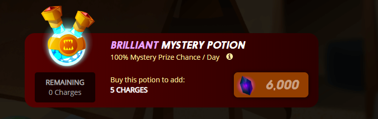 More specifically I bought the Brilliant Mystery Potion for 6000 DEC which gives me a 100% of finding something each day for 5 days.
