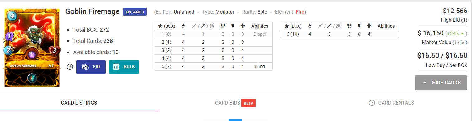 Initialy in an Untamed pack that was in my rewards I drew a Golden Goblin Firemage worth 16 bucks. I saw no usecase in this one versus the value that it would give on the market so I decided to sell it. This gave enough DEC to also get some DICE cards which is my absolute preference. Yes the packs are more expensive but the cards in there are also more valuable. Damn I miss those Orbs, the Orbs were my favorite.