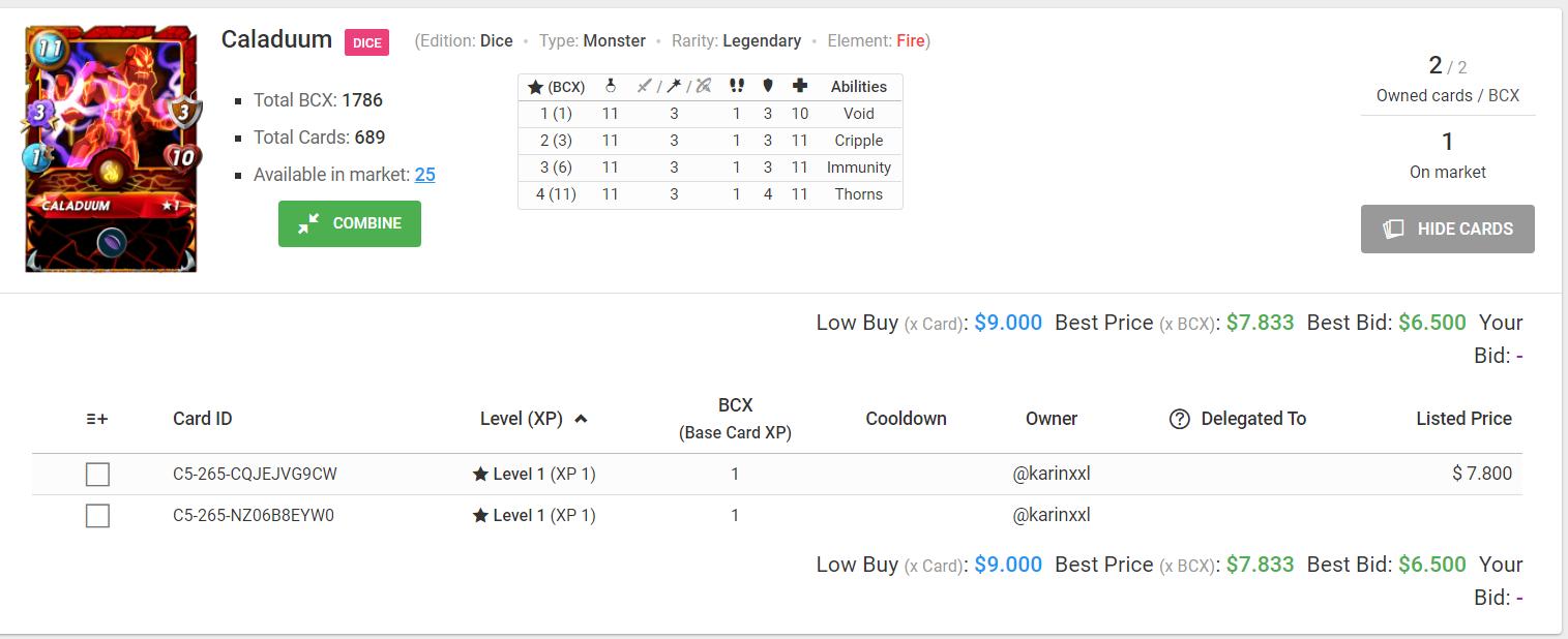 But from the sell of the Goblin I got a DICE pack and sold the rest of the DEC for around 20 or 25 HIVE. In there was a Calaaduum which is a legendary card. BOOOOM!
