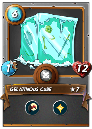 In third place the GELATINOUS CUBE for its Scavenger ability and that it heals itself, and I placed it there for 2 reasons, if the enemy placed a card with Snipe attack or if they eliminated my first 2 cards it healed itself and so I could hold a little more the attacks of my enemy.