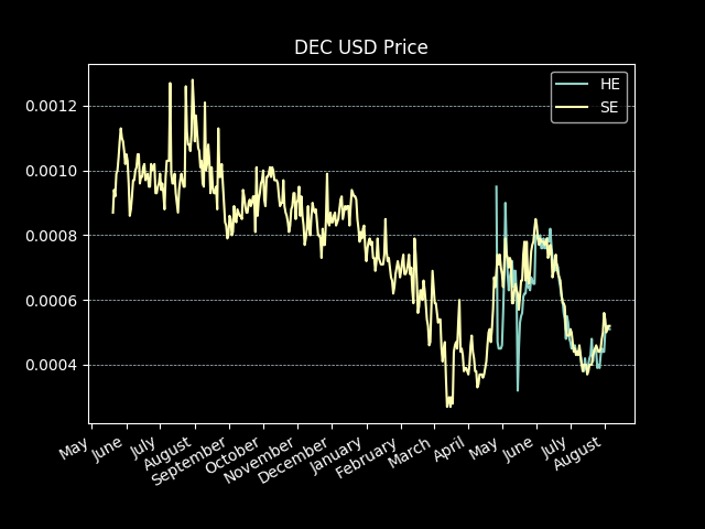 Historically 1000 DEC were around 1 dollar, now it is close to 0.5 dollars but it may eventually rise again.