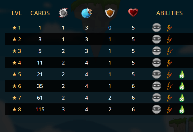 Now let's look at the higher level version...3 melee, 4 speed, 2 shield, 6 health with the Sneak, the Double Strike, and...wait for it...Poison!!! That goes on each strike too, so even if the 3 melee doesn't take out the opponent on the first go round, and another 3 doesn't take it out on the second go round, you have two tries at poisoning the Monster. Again with the higher mana cap games, the 7 mana price tag is negligible for a 6 attack, Sneak, Poison ninja with enough health to wash, rinse, and repeat.