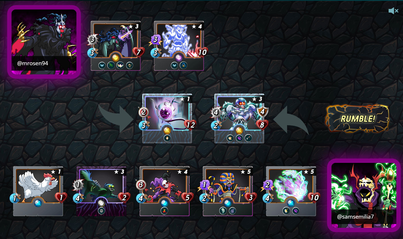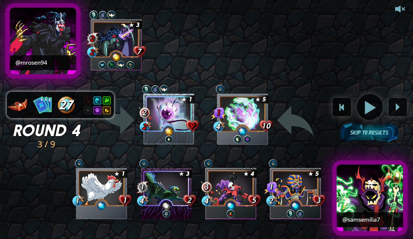 This is a Gold 1 Level battle. We are each playing Death splinters with neutral Monsters thrown in the mix. There is a 27 mana cap, Even Stevens, AND Close Range battle adjustments are in effect. .png)