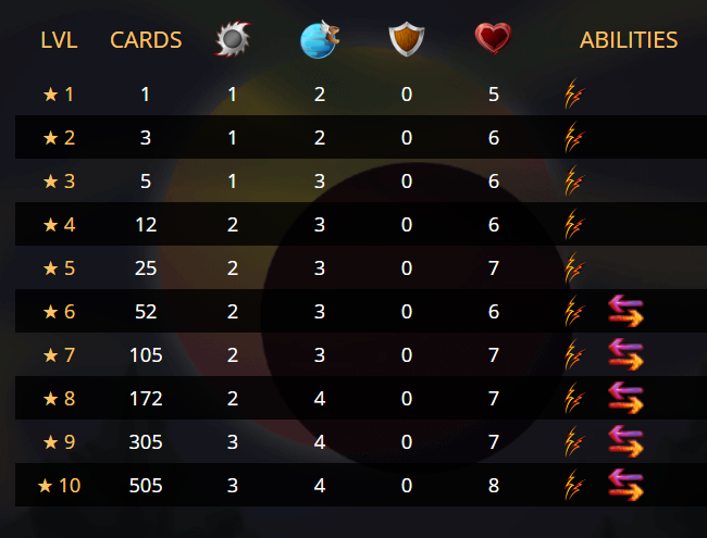 So as you can see, at his Level 1(1 bcx) you are going to get 1 melee, 2 speed, 5 life, and the ability Double Strike, which allows the Monster to inflict its damage twice every turn. If you can amass 505 of these bad boys you can have a Maxed out Level 10 which gives you 3 melee, 4 speed, still no shield, and 8 life. Plus in addition to Double Strike you have Retaliate which gives the Monster the chance to hit their attacker when hit by melee attack.