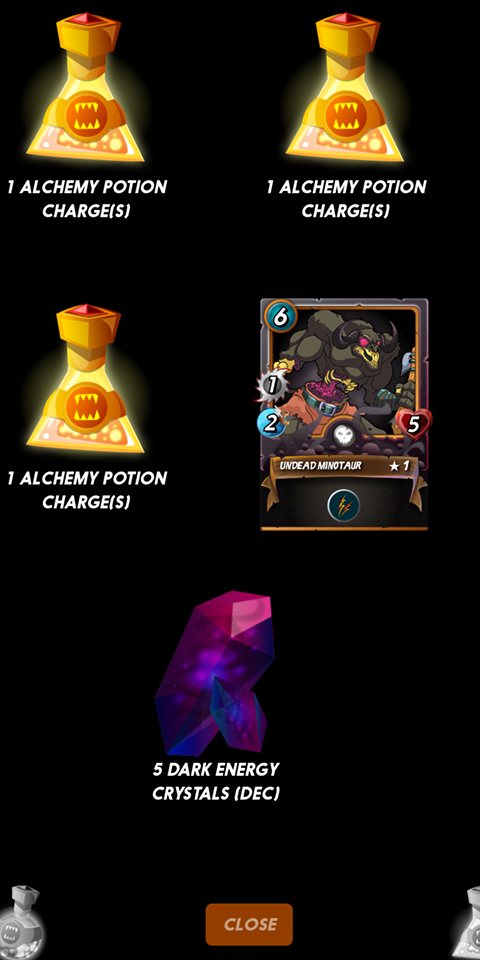 Talking about my reward, I got rewarded with 3 Alchemy Potions, 5 DEC and the card "UNDEAD MINOTAUR".