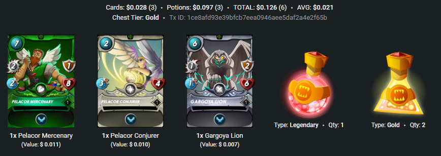The total current value of these rewards is estimated at around $0.126 also these cards add to my account 15 power.