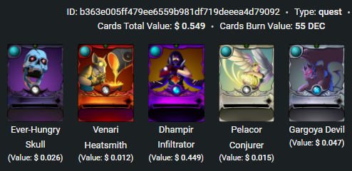 The total current value of these cards is estimated at around $0.549 also these cards add to my account 55 power.