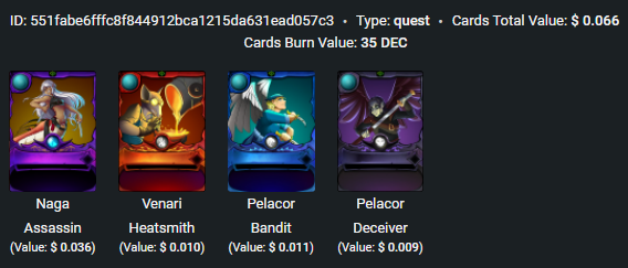 The total current value of these cards is estimated at around $0.066 also these cards add to my account 35 power.