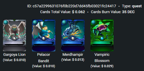 The total current value of these cards is estimated at around $0.062 also these cards add to my account 35 power.