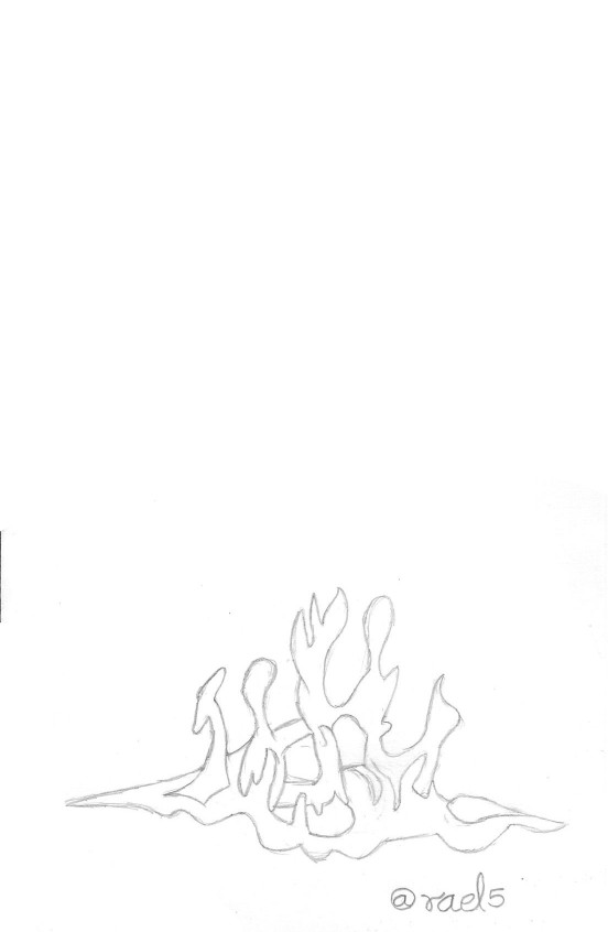 Comencé dibujando el Boceto en la hoja, específicamente, inicié con el boceto del fuego que Pyre tiene en la parte inferior derecha.