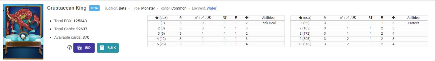 The other very good and must have card here is the Crustacean King, hes the only tank-heal unit in the water splinter, and provides protect aswell once he reaches level 6. Dont forget, this card does not have any attack value before lvl 3. That means it can be played in broken arrows rulesets.