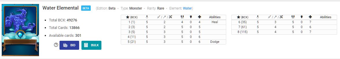 The Water Elemental is meant as a backline unit that defends the last spot in your team. He has enough HP to tank a few sneak unit hits and thanks to his heals he can endure quite a lot of them! His offences arent too bad either, he starts off with 2 dmg, gets to 3 dmg really fast already on lvl 3. And his max is 4 dmg starting from lvl 7.