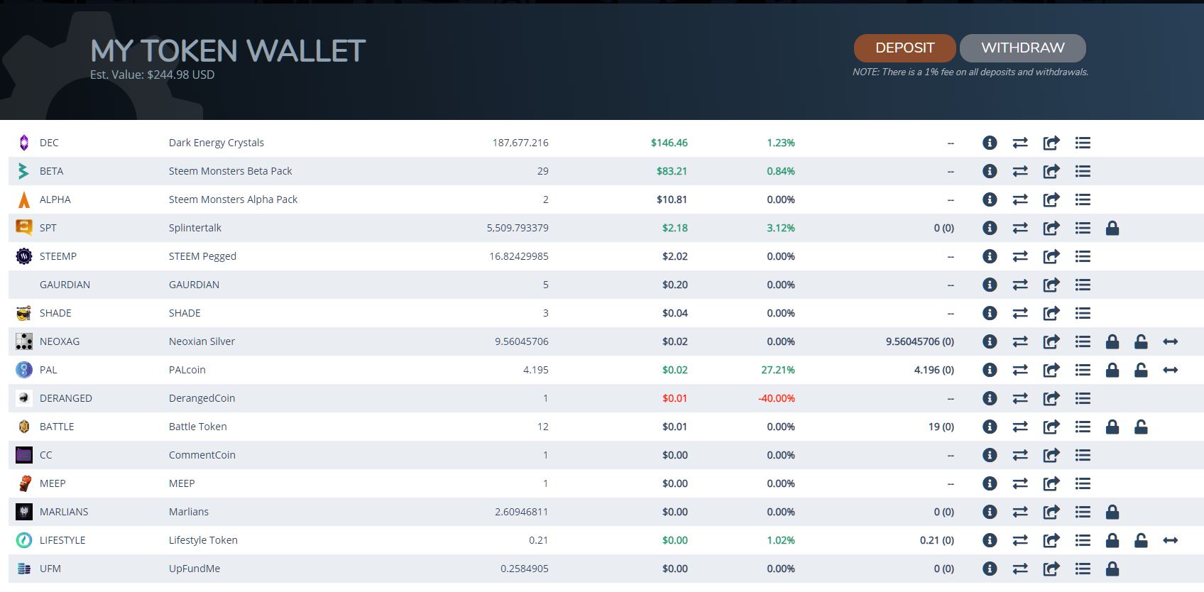 I also bought 5 GAURDIAN tokens, just for fun, I paid like 1 steem for it, so its not really an investment haha. All the other tokens are from doing posts here on steem.