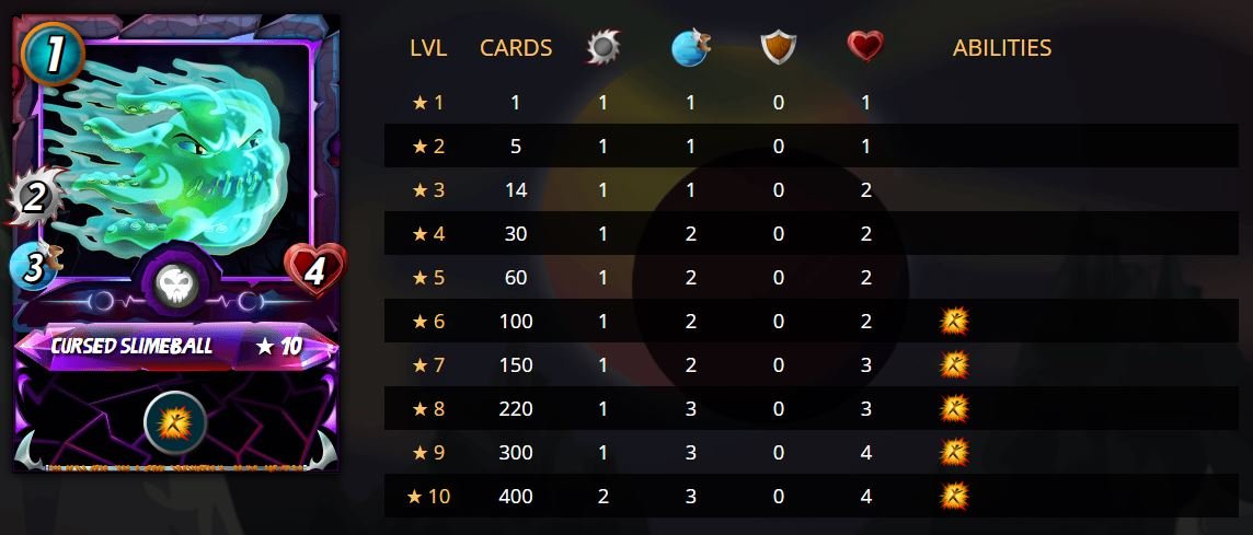 Lets look at these cards in the same order as the official post! So were starting with the newest Death Splinter card "Cursed Slimeball". And oh boi, he will be a curse of your enemies for sure! From the five cards shown today I think he will be the strongest. Having access to strong cards for low amounts of mana already was a strenght of this splinter, and this is another amazing addition.