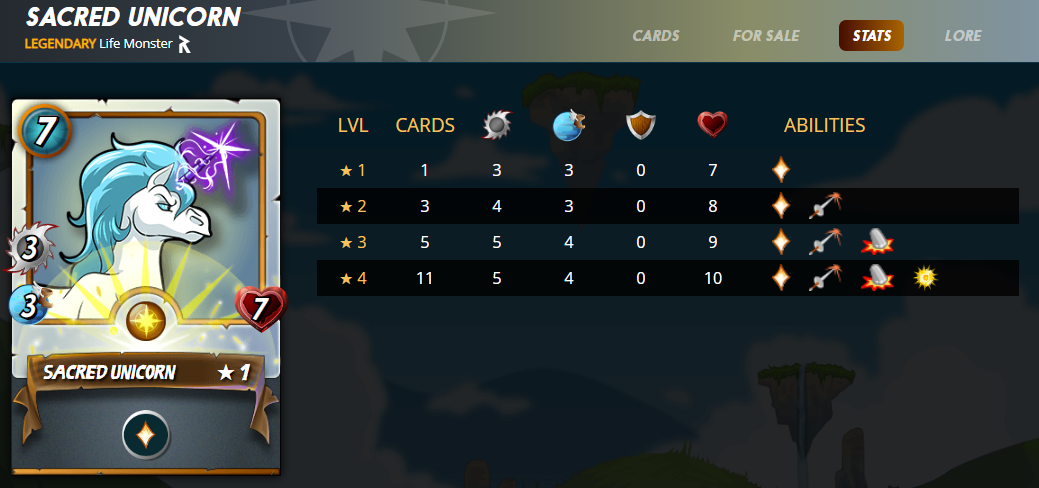 Here is the card you can win a level 1 Sacred Unicorn