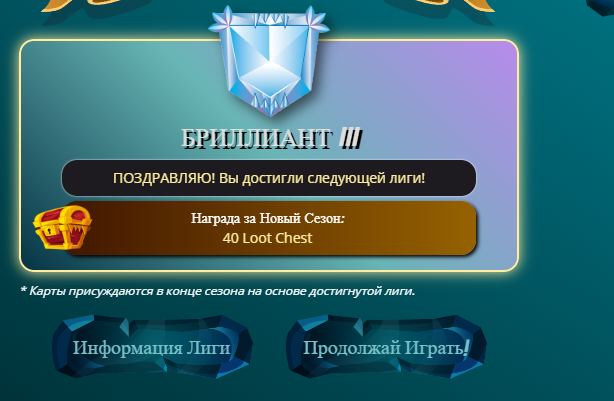 В этом сезоне надеюсь и до 2 уровня лиги дойти и за одно поймем хватит ли инвестиции или надо еще докупить карт. Надеюсь победы будут моими.