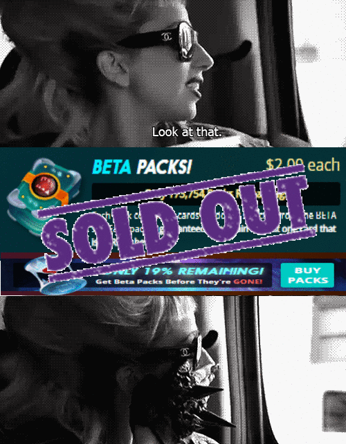 There will be 5 people who have the funniest meme will win a beta booster pack of cards! Beta booster packs will be sold out pretty soon so it is a great prize to get right now! Make sure to post the meme in the comments below on this post.