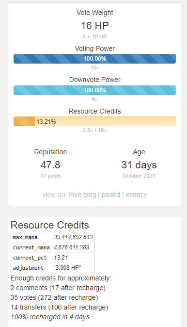 Well, what should I say. I did not take into account the cost of resources on the Hive blockchain. To explain: each transaction a player makes, whether it is a purchase or renting a card, the player loses some of his Hive resources. So every time you make a transaction the yellow bar in the picture goes down. When you are reaching close to zero this means that you can not do any transactions anymore. So what happened was: I had my deck and I went on to Peakmonsters.com to borrow some cards. I also found some pretty amazing deals. The only problem with that is, that if you are not fast enough somebody else gets the deal. The thing is, I thought if the transactions goes trough that means that I successfully get the card so I did not check any further.