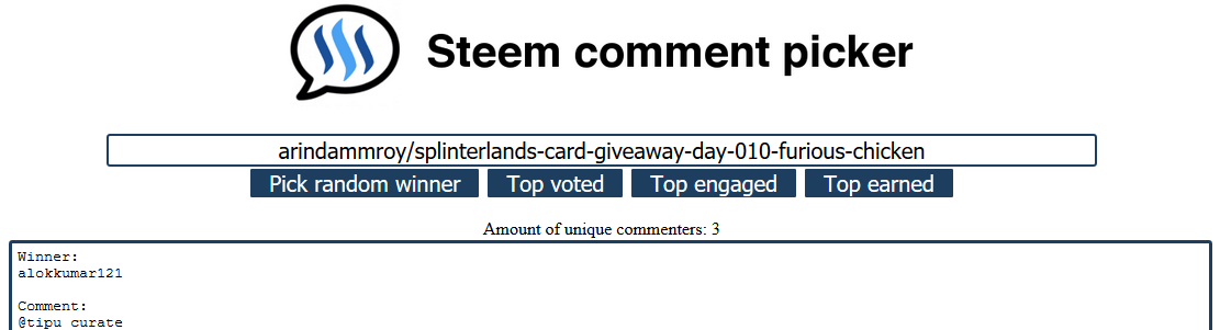 The winner will chosen by random comment picker http://pick.esteem.ws/