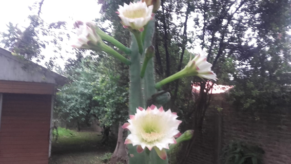 Y saben que era mi día de suerte nos sentamos a conversar en el patio de su casa y nuestra mayor sorpresa es que el cereus que tenia plantado floreció y por supuesto le tomamos foto las cuales quiero compartir con ustedes.