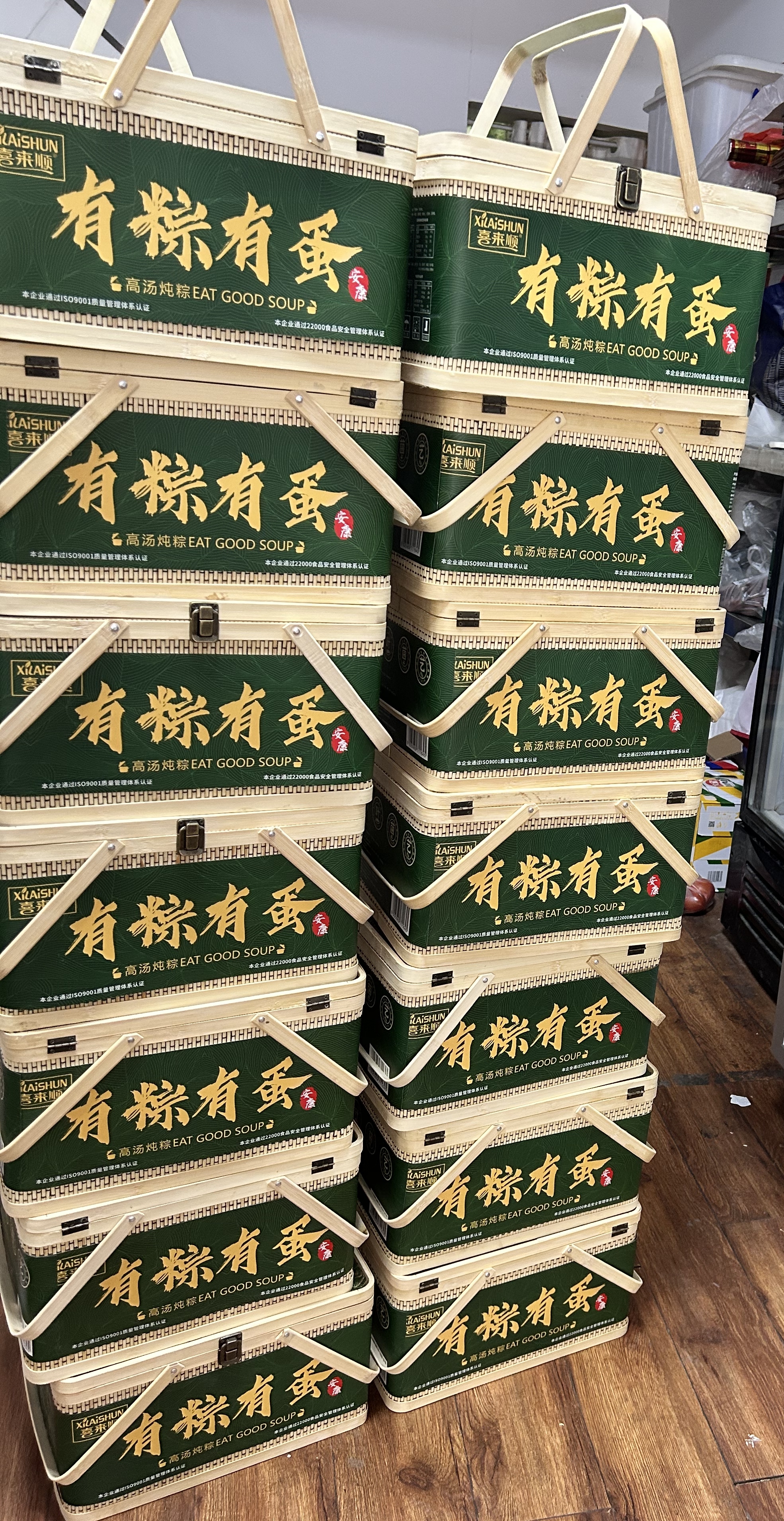 最近家里囤的吃的感觉快不充足了,于是前两天又在小区的团长那里买了一些东西。买了一箱哈密瓜,然后一点咸鸭蛋,然后又买了一些粽子。