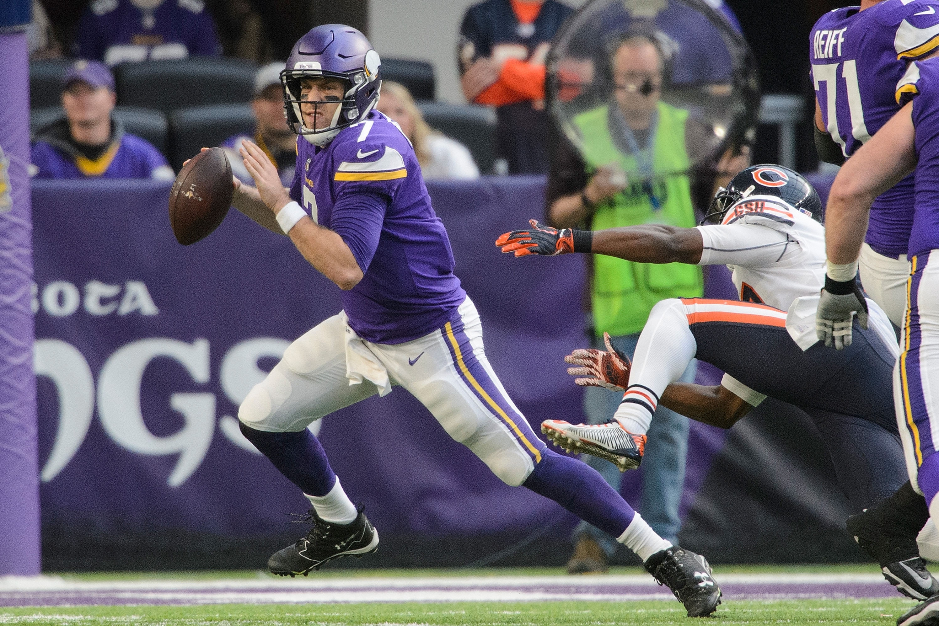 He spent the 2017 season with the Minnesota Vikings and threw for 3,547 yards and 22 touchdowns against seven interceptions.
