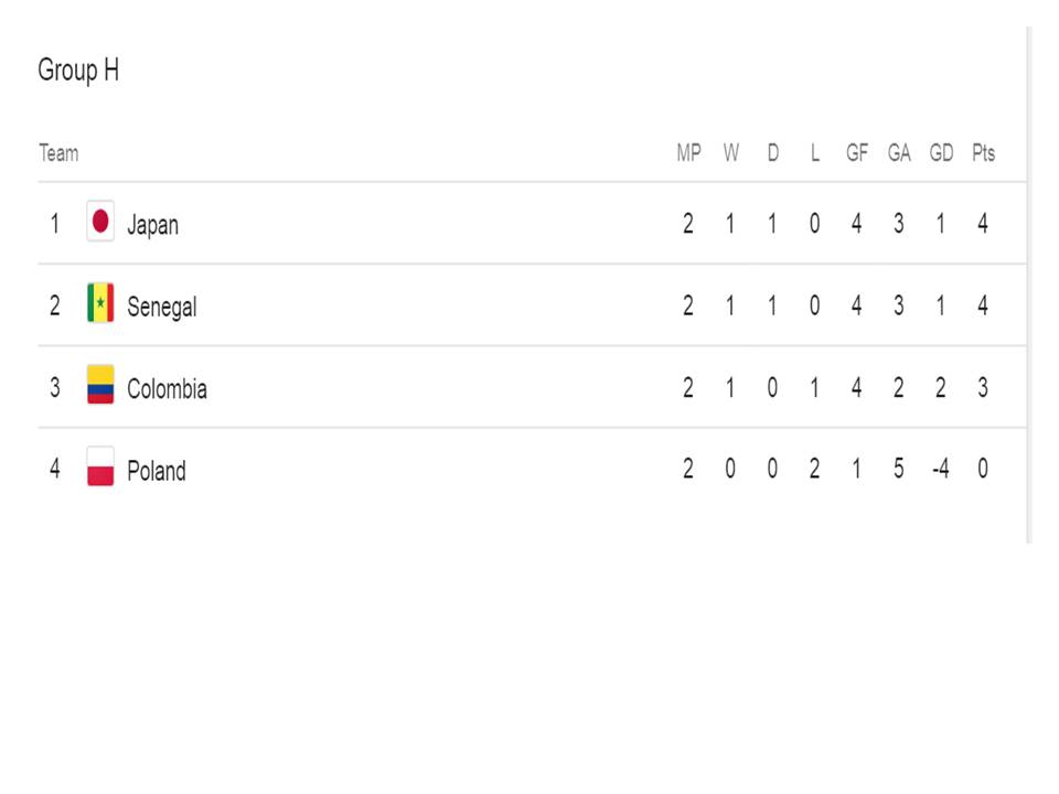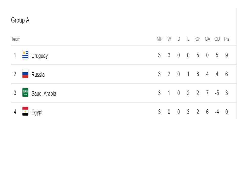 FIFA WORLD CUP 2018 POINTS TABLE
